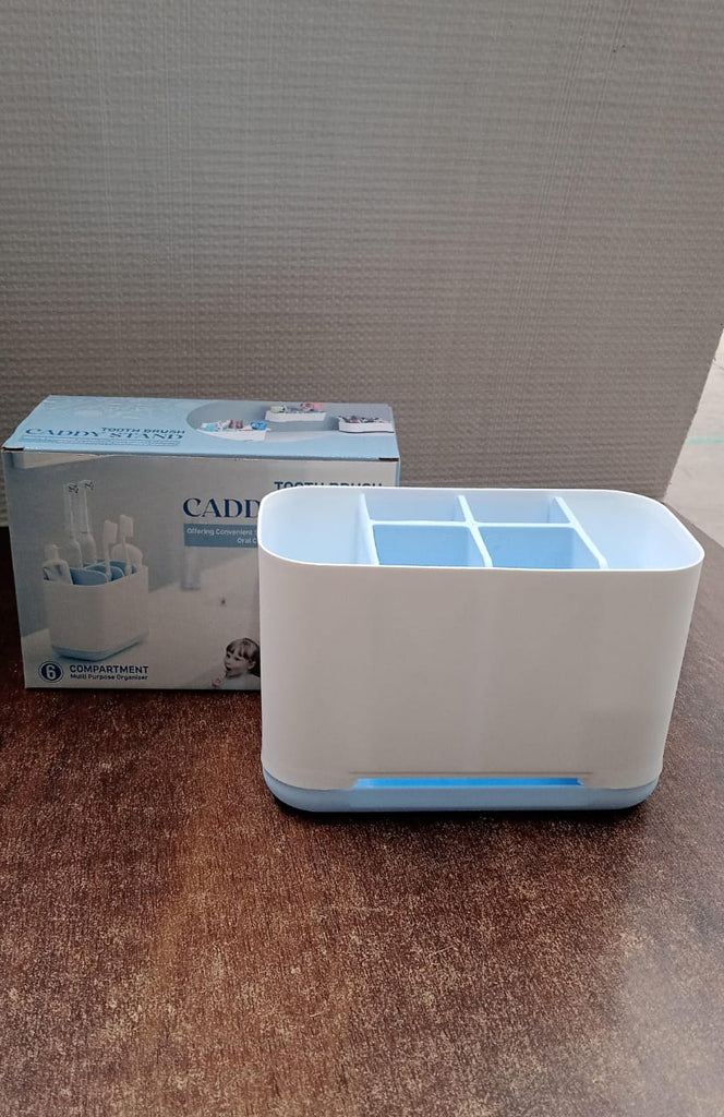 6 Compartment Multi Purpose Organizer Toothbrush Holder Stand Plastic Caddy Organizer for Toothpaste & Toothbrush, Brush, Cream, Lotion Water Drain Stand (1 Pc)